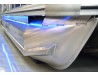 These strakes are dual purpose: first they lift pontoons to gain speed and second they keep spray knocked down so passengers don't get wet, a must on tri-toon with 115 hp and up